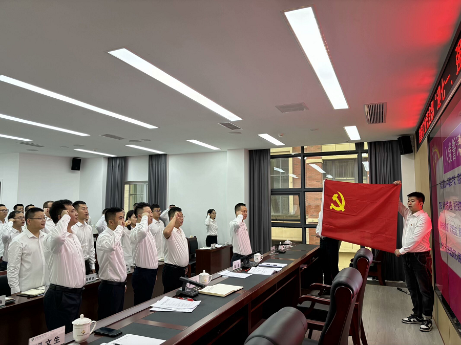6月27日上午,活動(dòng)在莊嚴(yán)的國歌聲中開始。公司黨支部書記、董事長袁波同志帶領(lǐng)全體黨員重溫入黨誓詞。面對(duì)鮮紅的黨旗,大家一起回憶入黨時(shí)那激昂的心,初心使命歷久彌堅(jiān)。