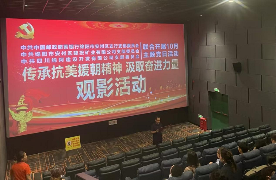 為慶祝中華人民共和國成立75周年,傳承和弘揚偉大的抗美援朝精神,深化愛國主義教育。10月18日下午,郵政儲蓄銀行綿陽市安州區(qū)支行黨支部、建投礦業(yè)黨支部、綿阿黨支部聯(lián)合組織開展了紅色觀影主題黨日活動,觀看了電影《志愿軍:存亡之戰(zhàn)》,重溫了抗美援朝這段波瀾壯闊的歷史。