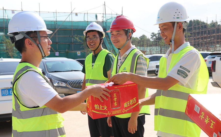 在建設(shè)現(xiàn)場,公司為一線人員準備了礦泉水、飲料、綠豆、西瓜、藿香正氣液等防暑降溫物品,對他們的辛勤付出表示感謝,并反復叮囑大家要注意防暑降溫,合理安排施工和休息時間,確保施工安全?;顒又?,還對現(xiàn)場施工人員進行了夏季防暑降溫、中暑急救知識宣傳教育,有效提高了大家的自我保護意識和能力。