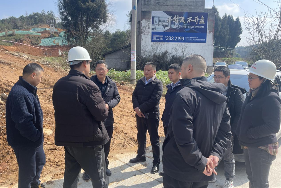 2月26日,區(qū)委常委、紀委書記、監(jiān)委主任汪勁宇帶隊調研綿陽市安州區(qū)秀水河堤防治理工程建設情況。(素材來源:工程項目部 何明鴻)